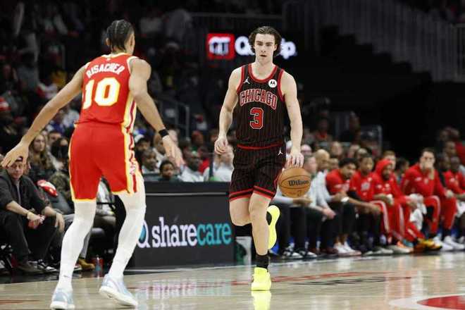 进入末节比赛,公牛率先打出一波8-0攻势追到仅差5分,老鹰很快内外开花重新拉开比分,末节中段老鹰维持117-107领先优势。公牛接连三分开火一波9-0攻势追到仅差1分,杰伦中投得分,怀特两罚全中,琼斯突破造成干扰球反超1分。老鹰接连打铁,吉迪抛射命中扩大3分优势打停老鹰,特雷-杨上篮命中,武切维奇三分不中。奥科罗关键篮板,怀特被犯规两罚一中,沃克上篮追到123-123。里萨谢致命犯规送怀特罚中一球准绝杀,武切维奇继续被犯规两罚全中,沃克超远三分不中,最终老鹰遭公牛逆转击败。