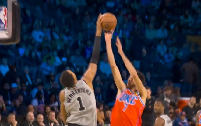 末节开局文班亚马正面大帽霍姆格伦。